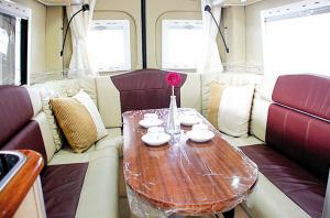 在寬敞的房車?yán)铮梢灾箫、打牌、睡覺等。