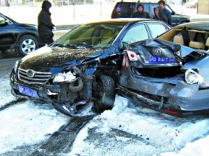 在距離事發(fā)地點(diǎn)不到5米的一家汽車銷售店上班的閻先生稱,事發(fā)時(shí)外面很安靜,他和店里的同事接連聽見兩下撞擊聲,出門就看到慘劇發(fā)生。豐田車的左前側(cè)受損嚴(yán)重,前輪搖搖欲墜。而速騰車和廣本車的車尾部被撞嚴(yán)重,完全癟了進(jìn)去,其中速騰車后備箱里的備胎還被撞了出來。“肇事豐田車?yán)镉?人,司機(jī)下車后還是鎮(zhèn)定地安撫乘客。”閻先生說,被撞的男子趴在雪地里,頭上滿是鮮血。隨后999趕到,據(jù)急救人員稱,剛開始男子還有呼吸,但2分鐘之后,男子死亡。