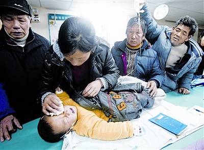 昨晨7時許,洪湖市沙口鎮(zhèn),王春華發(fā)現(xiàn)前幾天就精神萎靡的2歲兒子蔣志鵬臉色越加蒼白,遂在公公、婆婆和叔公的陪同下,于8時許將孩子送往沙口鎮(zhèn)衛(wèi)生院。