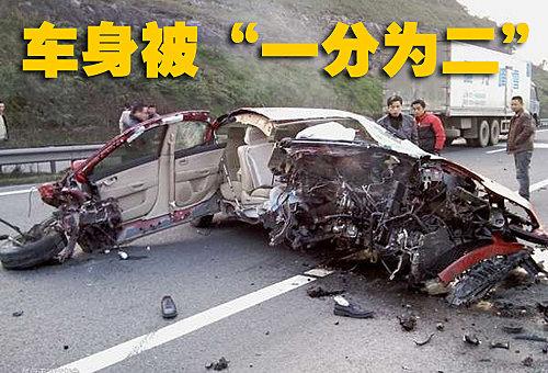 車頭受損非常嚴(yán)重,已經(jīng)面目全非,在左側(cè)基本已經(jīng)無法看出這是一輛什么品牌的汽車。副駕駛席的乘客被甩出車外,鞋子留在了路上。因為撞擊點(diǎn)在副駕駛員一側(cè),駕駛員一側(cè)留有安全的空間,所以駕駛員并無生命危險。