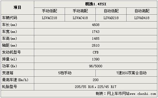 朗逸1.4TSI車型于上海國際車展首演后將于年內(nèi)正式上市,相比普通版版車型朗逸1.4TSI不僅在外觀和內(nèi)飾上均有不同程度的變化,而且還將搭載1.4升渦輪增壓燃油直噴引擎。雖然朗逸1.4TSI車型離上市還有一段時間,但是通過以下參數(shù)配置曝光,我們可以提前一睹朗逸旗艦車型的到底具備怎樣的性能。