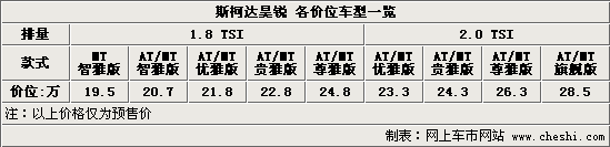 上海大眾斯柯達(dá)推出的全新B級車Superb昊銳,將于8月18日上市宣布價(jià)格。目前首批展車已經(jīng)運(yùn)抵北京部分斯柯達(dá)4S店,近期部分經(jīng)銷商還將舉辦小規(guī)模的試駕賞車活動。與此同時記者也以消費(fèi)者的身份詢問了北京地區(qū)多家斯柯達(dá)授權(quán)經(jīng)銷商,通過詢問我們得知了斯柯達(dá)昊銳的預(yù)售價(jià)格區(qū)間為19.5-28.5萬元,共分為9款車型: