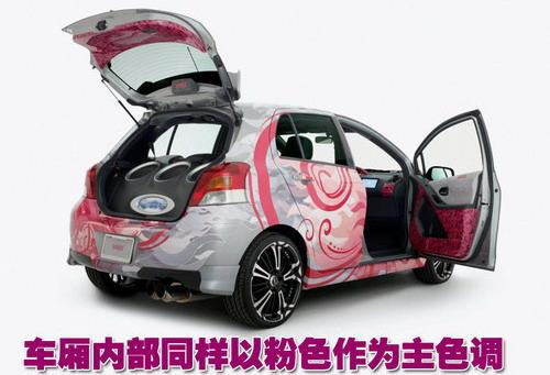 豐田雅力士的目標(biāo)消費(fèi)人群主要為女性消費(fèi)者,因此豐田此次與零部件合作部門(mén)以及售后合作商推出的這款改裝雅力士車(chē)型采用了粉色的車(chē)身噴涂,其車(chē)廂內(nèi)部也是以粉色作為主色調(diào)。
