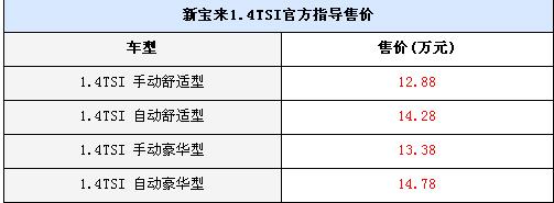 2010年6月10日,一汽-大眾2011款新寶來的1.4T車型正式上市,售價區(qū)間在:12.88萬-14.78萬元。具體的車型售價請見下表: