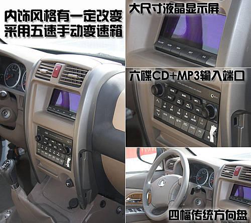 哈弗H5的內飾也比較符合長城汽車SUV產(chǎn)品的設計風格,中央控制區(qū)仍然是方方正正的造型。不得不說的是,哈弗H5內飾的用料依然顯得塑料感太強。但這款車的內部配置卻非常齊全,不僅配備了六碟CD和MP3輸入端口,還配備了大尺寸液晶顯示屏。哈弗H5采用的四幅式方向盤顯得比較簡單,沒有音響按鍵和定速巡航功能。