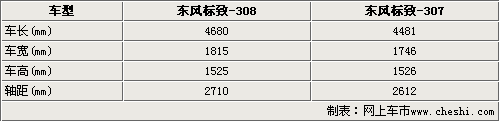 東風(fēng)標(biāo)致308車身尺寸明顯超過了標(biāo)致307車型,4680mm車長、1815mm的車寬和1525mm的車寬,使得標(biāo)致308外形更加大氣,同時(shí)在加上2710mm的軸距,進(jìn)一步確保了標(biāo)致308車內(nèi)空間的寬敞,標(biāo)致307的軸距僅為2612mm。