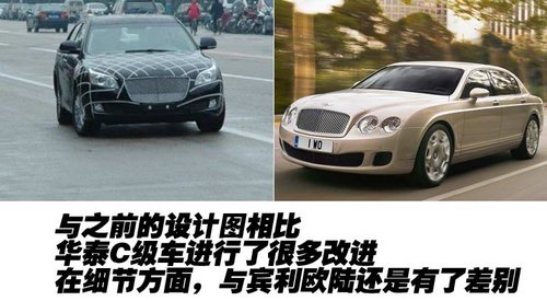 華泰B級車的車身尺寸足以媲美賓利歐陸飛馳,而且整車的側面腰線也非常流暢,但與賓利前后線條下墜的樣式還是有不同之處。而且尾部的造型雖然摻雜了一些模仿的元素,但尾燈、霧燈包括輪轂等設計都全然不同。