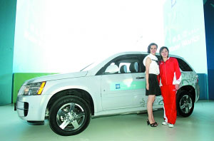 上周,通用汽車(chē)零油耗、零污染的氫燃料電池車(chē)雪佛蘭Equinox在北京奧運(yùn)會(huì)“水立方”場(chǎng)館西側(cè)的盤(pán)古大觀亮相。