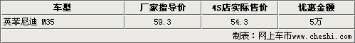 據(jù)英菲尼迪4S店銷(xiāo)售人員介紹,目前店內(nèi)現(xiàn)款M35車(chē)型的現(xiàn)車(chē)相對(duì)較全,若消費(fèi)者對(duì)于車(chē)輛的顏色及版本沒(méi)有特殊要求,可在展廳內(nèi)近距離接觸展車(chē)后直接付款購(gòu)買(mǎi)現(xiàn)車(chē)。銷(xiāo)售人員表示,近期在店內(nèi)購(gòu)買(mǎi)EX35車(chē)型的消費(fèi)者均可享受5萬(wàn)元的現(xiàn)金優(yōu)惠。