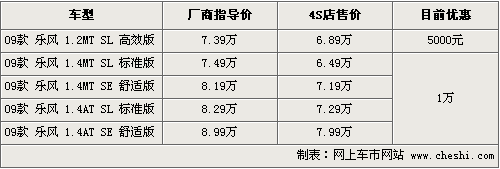 據(jù)4S店銷售人員介紹,目前銷售的樂風(fēng)為09款車型,主要包括1.2和1.4兩個排量,1.6排量車型廠家尚未排產(chǎn)。目前購買樂風(fēng)1.2排量可以優(yōu)惠5000元現(xiàn)金,最低僅售6.89萬元。1.4排量全系列優(yōu)惠現(xiàn)金1萬元,頂配自動檔車型優(yōu)惠后售價不足8萬元。在外觀顏色上,目前有藍(lán)色,銀色,紅色可供消費(fèi)者選擇,內(nèi)飾均為米色。
