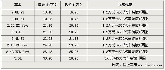 據(jù)經(jīng)銷商表示,購買八代雅閣除了可以得到5萬元的價格優(yōu)惠外,還可以得到4500元的裝潢大禮包和保險。優(yōu)惠后的八代雅閣2.0 MT售價僅為16.98萬。