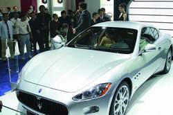 瑪莎拉蒂最新GT跑車Gran Turismo在今年登陸中國。這款車長4881mm的大型跑車勾畫得靈動瀟灑,毫無沉重之感。車頭正中巨大的內(nèi)凹式進(jìn)氣格柵和上面鑲嵌的威嚴(yán)的瑪莎拉蒂三叉戟標(biāo)志,構(gòu)成了經(jīng)典的“鯊魚式”家族臉譜。修長的發(fā)動機(jī)艙與車體中、后部的比例特征,以及發(fā)動機(jī)艙蓋面板上的V字形造型,使得“優(yōu)雅、性感、前衛(wèi)、時(shí)尚、復(fù)古”這些似乎矛盾的詞語同時(shí)閃現(xiàn)在腦海中。