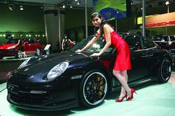 保時(shí)捷第一次以廠商名義參加廣州車展便給車迷帶來驚喜。911GT2——保時(shí)捷911系列性能之王的高性能跑車,采用后輪驅(qū)動搭配6速手動變速箱,100公里/每小時(shí)加速僅需3.7秒,最高時(shí)速為329公里。引人注目的前端大進(jìn)氣口和尾翼的設(shè)計(jì),是這款車型的典型特征。此外,配備獨(dú)家Porsche Design裝備的黑色限量版Cayman S硬頂跑車全球僅生產(chǎn)777輛,起售價(jià)為99.8萬人民幣!