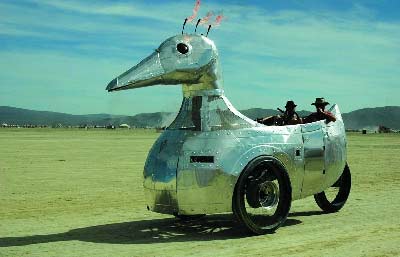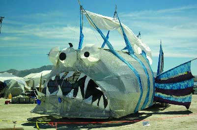 說到美國,迄今為止恐怕沒有什么比汽車更能代表這個(gè)國度了。所以,在今年的節(jié)日上,我們也有幸看到了各式各樣的怪異汽車:木制的悍馬被涂得五顏六色、窮兇極惡的大鯊魚齜牙咧嘴、美國式的泰坦尼克號……一句話,在追求異想天開與荒誕的BurningMan節(jié)日,沒有什么不可能。看看這些圖片,您是否也能做一輛?
