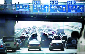 交管部門表示,本周之后,交管局將動用主干線上可達到“無縫”級別的監(jiān)控器,對違規(guī)上路車輛進行非現(xiàn)場執(zhí)法,交警也會加大現(xiàn)場執(zhí)法力度,對違反“五日制限行”規(guī)定的車處以100元罰款。(記者安然 程功攝)
