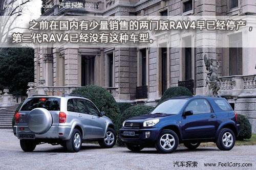 由于RAV4在美國(guó)和歐洲地區(qū)都有銷售,考慮到歐洲消費(fèi)者的用車習(xí)慣之前的兩代產(chǎn)品均有兩門版。而從2006年開始生產(chǎn)的第三代產(chǎn)品開始就已經(jīng)不再提供兩門車型,因此可以肯定國(guó)內(nèi)也不會(huì)再有兩門版RAV4銷售了。