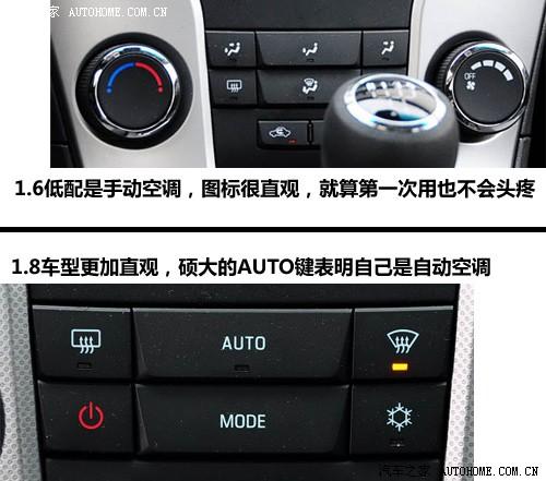 區(qū)分1.6和1.8的中控看起來比較困難,實(shí)際主要觀察空調(diào)部分的區(qū)別就能明了,科魯茲不管是手動(dòng)還是自動(dòng)空調(diào)都挺簡(jiǎn)潔,上手不需要什么琢磨的時(shí)間,不過上部的音響控制區(qū)就有些晦澀了,很多按鈕如果不嘗試看字面永遠(yuǎn)也不知道什么功能,例如TP、AS、FAV等。