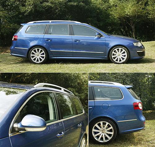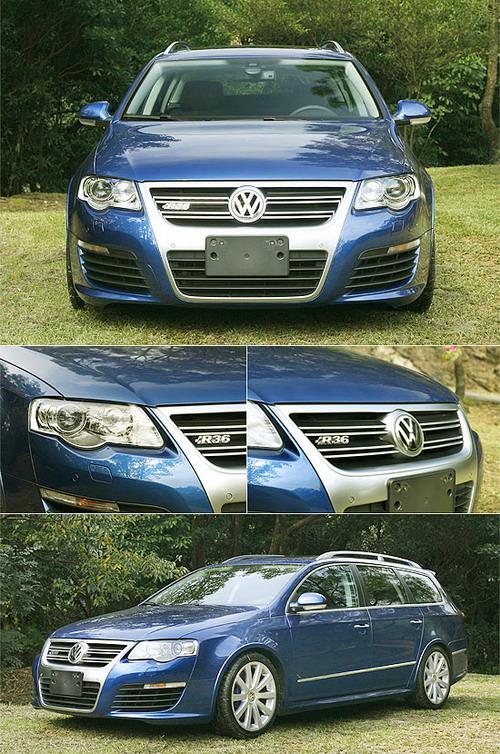 一如原廠官方照片的主打車色,此次所試的R36即采用R家族招牌的靛藍(lán)色烤漆。在穩(wěn)重而帶點(diǎn)豪華的造型基調(diào)下,大眾Individual客制化部門以空力套件的方式,為R36營造出截然不同的運(yùn)動風(fēng)格。招牌的V字型水箱護(hù)罩,依舊是R36車頭的焦點(diǎn)所在。仔細(xì)觀察,R36的水箱護(hù)罩采用霧面質(zhì)感處理,并采用與R32相同的雙肋樣式;而“R36”專屬銘牌亦鑲嵌于此,點(diǎn)出其獨(dú)特的性能身份。
