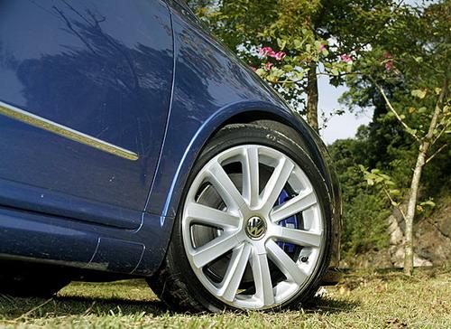 有別于其它改裝廠慣用紅色代表性能基因,大眾的運(yùn)動R家族則選用藍(lán)色作為代表。除了車身烤漆外,靛藍(lán)色也成為妝點(diǎn)輪圈的重要元素。R36腳踏尺碼235/40 R18的大腳扁平跑胎,搭配造型簡約的10幅Omanty鋁圈;其后則是R家族獨(dú)有的藍(lán)色剎車卡箝,隱喻強(qiáng)大的制動性能。
