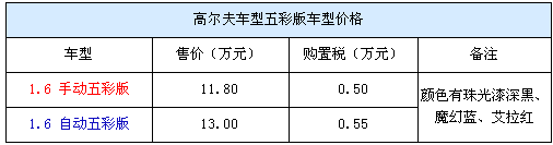 目前店內(nèi)有的五彩版高爾夫有深黑、魔幻藍、艾拉紅三種顏色的現(xiàn)車,而且手動自動車型均有車銷售。而現(xiàn)在高爾夫五彩版高爾夫的售價則是手動車型11.7萬、自動版13萬元。目前購車還能得到店方贈送的全額購置稅。據(jù)了解目前店內(nèi)對五彩版高爾夫車型還有大幅度的優(yōu)惠,車價直降1萬元,而加上店方贈送的購置稅使得高爾夫的性價比更高。
