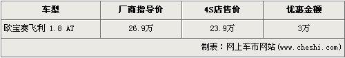 據(jù)4S店銷售人員介紹,目前進(jìn)口歐寶賽飛利MPV只有1.8自動(dòng)檔一款車銷售。目前此款車型優(yōu)惠3萬元,經(jīng)優(yōu)惠后售價(jià)從26.9萬元下降到了23.9萬元。目前4S店內(nèi)現(xiàn)車供應(yīng)比較充足,款色均比較齊全,消費(fèi)者選擇的空間非常大。