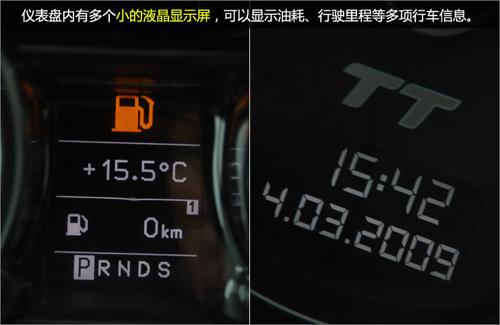 儀表盤內(nèi)有多個小的液晶顯示屏,可以顯示油耗、行駛里程等多項行車信息。