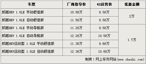 凱越HRV是04年10月上市銷售的,其憑借流暢的外形博得了不少消費(fèi)者的喜愛(ài)。07年10月份,上海通用別克又推出了增加前后包圍套件的運(yùn)動(dòng)版凱越HRV,流暢的外形在前后包圍的裝飾下彰顯運(yùn)動(dòng)。近日根據(jù)網(wǎng)上車市價(jià)格檢測(cè)系統(tǒng)顯示,凱越HRV最高優(yōu)惠2萬(wàn)元,導(dǎo)航版與運(yùn)動(dòng)版車型優(yōu)惠升至1.7萬(wàn)元,具體詳情請(qǐng)看下表: