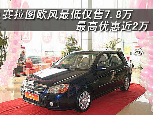 賽拉圖歐風(fēng)是東風(fēng)悅達(dá)起亞汽車有限公司旗下的首款兩廂車型,全系有四個(gè)車型,價(jià)格區(qū)間為9.18萬元-11.68萬元。近日,記者在走訪北京地區(qū)東風(fēng)悅達(dá)起亞4S店時(shí)了解到:目前購(gòu)買賽拉圖歐風(fēng)車型最高可以得到1.78萬元的現(xiàn)金優(yōu)惠,具體車型售價(jià)見下表: