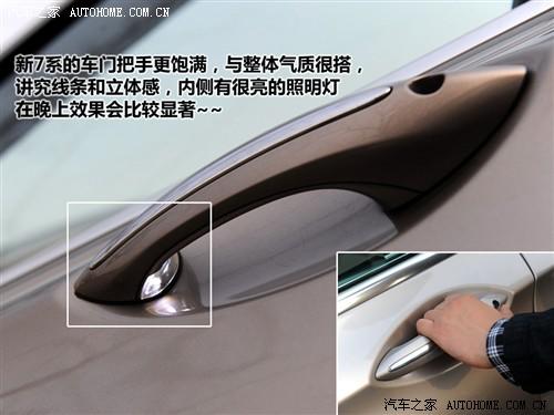 當(dāng)天色暗下來,僅憑尾燈就可以使我在車流中輕易地找到前面行駛的750Li。這種展翼式效果的尾燈大概是當(dāng)下最流行的,略帶一點(diǎn)波浪形,于起伏有致中將動(dòng)感一一展現(xiàn)。車門把手屬于外觀細(xì)節(jié)中不太受重視,但卻非常需要與整體風(fēng)格協(xié)調(diào)。新7系的把手列飽滿,而且和車身氣質(zhì)很搭,內(nèi)側(cè)有亮度不錯(cuò)的照明燈,晚上效果會(huì)較顯著。