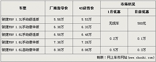 據(jù)經(jīng)銷商處銷售人員介紹,目前駿捷FRV在售的有五款車型,優(yōu)惠金額都分別有所下降。1.3L車型優(yōu)惠500元,1.6L手動(dòng)檔車型優(yōu)惠從2000元降到了1000元,1.6L自動(dòng)檔車型優(yōu)惠也從5000元降到了3000元。經(jīng)過(guò)優(yōu)惠調(diào)整后,1.6L手動(dòng)舒適型售價(jià)變?yōu)?.48萬(wàn)元,1.6L手動(dòng)豪華版售價(jià)變?yōu)?.28萬(wàn)元。全系最高配的1.6L自動(dòng)豪華型售價(jià)回升到了8萬(wàn)元區(qū)間。