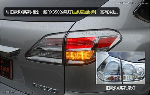 新RX350變化最大的莫過于全新設(shè)計(jì)的組合式尾燈了。更流線型的造型,更絢麗的LED燈組合,營造出跑車般的視覺效果。