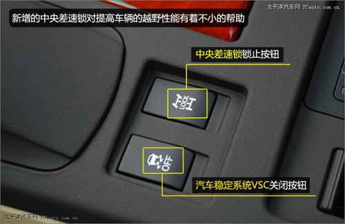 在排檔桿的后方,是中央差速鎖鎖止按鈕和汽車穩(wěn)定系統(tǒng)VSC關(guān)閉按鈕。汽車穩(wěn)定系統(tǒng)VSC相當(dāng)于德系車常見(jiàn)的ESP系統(tǒng),對(duì)于穩(wěn)定高速行駛的車輛有著很大的幫助。此外,新RX350還標(biāo)配了上坡輔助系統(tǒng)HAC、防抱死制動(dòng)系統(tǒng)ABS配制動(dòng)力輔助系統(tǒng)BA、電子制動(dòng)力分配系統(tǒng)EBD、牽引力控制系統(tǒng)TRC、汽車動(dòng)態(tài)中和管理系統(tǒng)VDIM,可以給駕駛員和乘客以最好的保護(hù)和輔助。