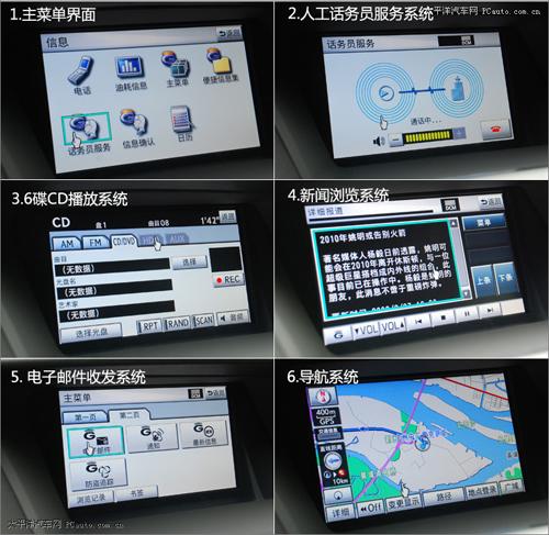 熟悉了Remote-Touch按鈕的操作,我們現(xiàn)在來(lái)看看車載電腦究竟包含了那些特殊的功能。個(gè)人認(rèn)為該系統(tǒng)最大的創(chuàng)新之處在于其大膽地在電腦中植入了雷克薩斯智能副駕LEXUS G-BOOK。該系統(tǒng)可以借助車載智能通信系統(tǒng),利用裝載在車輛上的通信終端,通過(guò)無(wú)線網(wǎng)絡(luò)與數(shù)據(jù)中心連接,為顧客實(shí)現(xiàn)安心、安全、便利、術(shù)士的駕車體驗(yàn)。這套服務(wù)在初期階段將為顧客提供緊急救援服務(wù)、防盜追蹤服務(wù)、道路救援服務(wù)、保養(yǎng)通知服務(wù)、話務(wù)員服務(wù)、咨詢提供服務(wù)和G路徑檢索服務(wù)等其中便捷、實(shí)用的服務(wù)內(nèi)容,讓駕車成為一種享受。