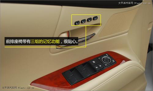 將目光轉(zhuǎn)移到中央扶手側(cè),我們發(fā)現(xiàn)雷克薩斯的前排座椅帶有三組記憶功能,很貼心。電動(dòng)后視鏡調(diào)節(jié)按鈕、車窗升降按鈕亦集中在駕駛員一側(cè)的門把手上。