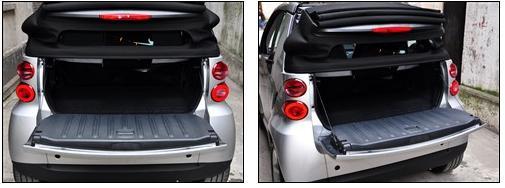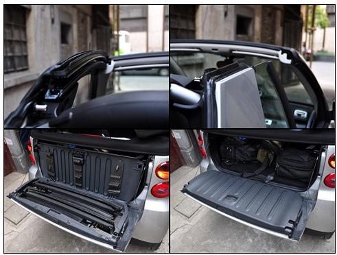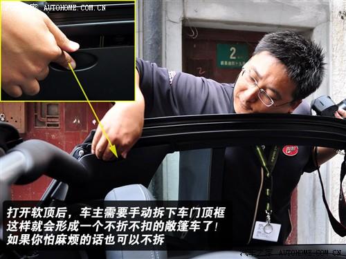 如果想徹底享受陽光的話,那就干脆將它全部打開!當(dāng)車窗開啟完畢后其實還有一項工作是你值得去做的,那就是去掉車門上方的頂框讓smart變成一輛不折不扣的敞篷車!