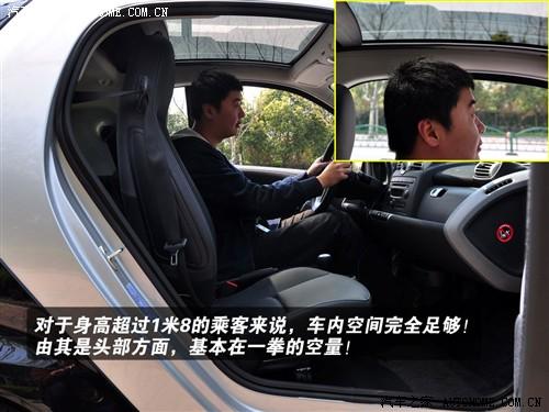 smart只為兩人設(shè)計,1867mm的軸距、1543mm的高度足以在一個小后備箱之外提供足夠大的乘坐空間了!即使是身高超過1.8米的乘客坐上去都很充裕,頭部方面仍有一拳的余量!