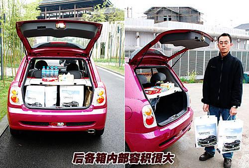 力帆320的后備箱內(nèi)部空間比較大,像圖中模特所提的袋子,后備箱至少可以放四個(gè)以上。而且這款車的后備箱上面帶有置物隔板,可以放一些小件物品。經(jīng)過(guò)測(cè)試,后備箱可以放下一箱礦泉水、四個(gè)袋子以及抽紙盒等其他小件物品,實(shí)用性很好。