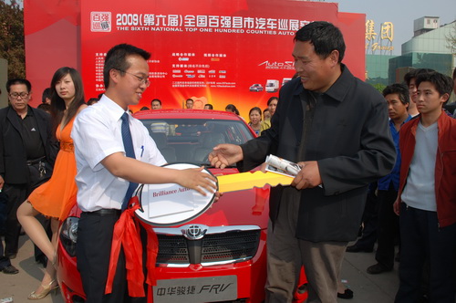 中新網(wǎng)4月19日電 4月12日下午3時許,中華駿捷FRV新車交接儀式在辛集站巡展現(xiàn)場舉辦。一位辛集的中華駿捷FRV新車主接過閃閃發(fā)亮的鑰匙模型,激動地說道,謝謝華晨汽車、謝謝百強巡展。