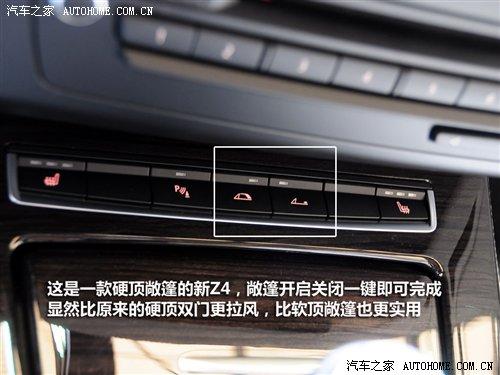 新Z4的空調(diào)面板主要是四個(gè)圓形的調(diào)節(jié)旋鈕,而空調(diào)面板設(shè)計(jì)在音響面板的下方,讓人一時(shí)會(huì)感到奇怪。使用雙區(qū)恒溫自動(dòng)空調(diào)還不錯(cuò)。音響面板下面還有一排小的按鍵,兩端是座椅加熱功能,而中間兩個(gè)很重要,就是硬頂?shù)拇蜷_(kāi)與收起。天氣晴朗的日子,開(kāi)上它去兜個(gè)風(fēng),風(fēng)云突變也不會(huì)瞬間從拉風(fēng)變成狼狽,按一下收起,它就會(huì)變成一輛普通的硬頂跑車(chē)來(lái)遮風(fēng)擋雨。