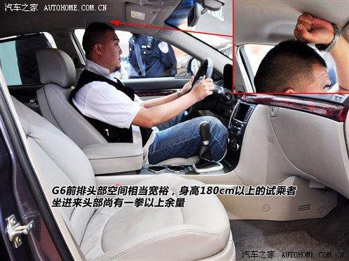 對(duì)于這種大尺寸車型最慣性的思路是感受它的空間。G6前排坐進(jìn)180cm以上乘客時(shí),頭部還有一拳以上余量。同一個(gè)人體驗(yàn)后排,腿部三指、頭部四指的空間余量只能說比較一般。