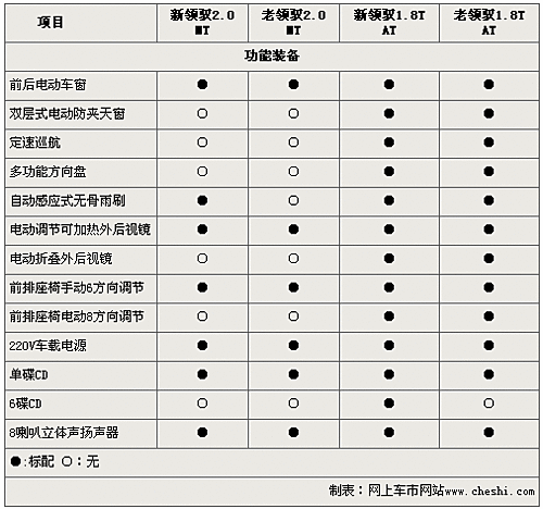 新領(lǐng)馭車型雖然經(jīng)過上海大眾重新開發(fā),但在內(nèi)部裝備方面較老款領(lǐng)馭車型沒有本質(zhì)提升。新領(lǐng)馭2.0排量入門車型除較老款車型增配了自動感應(yīng)式無骨雨刷外,兩款車沒有任何區(qū)別。而新老領(lǐng)馭1.8T主推車型的配置也只體現(xiàn)在CD音響等方面。至于新老領(lǐng)馭車型您到底會選擇誰,這還要看您的個人喜好了。
