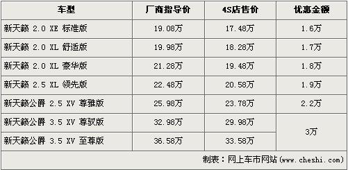 根據(jù)4s店銷售人員介紹,近期購買新天籟的消費者可以享受到全系最高3萬元的優(yōu)惠。新天籟車型分為2.0、2.5以及3.5三個排量,3.5L車型目前讓利3萬元達到了全系的最高,經(jīng)優(yōu)惠后3.5 尊馭版和3.5至尊版售價分別降到了29.98萬元和33.58萬元。而其他兩個排量車型則采用的是買車購置稅減半的優(yōu)惠政策,根據(jù)消費者要求的不同,減去的一半購置稅也可以抵車價。全系入門級的2.0標準版經(jīng)優(yōu)惠后,售價跌破18萬元,僅為17.48萬元。優(yōu)惠銷售人員還介紹,新天籟全系均無現(xiàn)車,欲購買車需交訂金1萬元,約等1個月可提車。