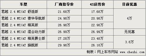 據(jù)4S店銷售人員介紹,目前購買現(xiàn)款君越全系車型可優(yōu)惠到3.8萬元,部分4S店還將贈送2000元的裝飾,優(yōu)惠累計達4萬,但混合動力版君越仍然是全款訂車或購買,沒有優(yōu)惠幅度。君越目前有黑色和同時受到眾多關(guān)注的新君越,銷售人員介紹,這款車現(xiàn)在就可以接受預訂,訂金為1000元,屆時新車到店以后,消費者如果不滿意可退還全額訂金。