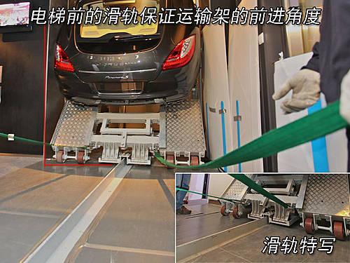 一輛龐大的跑車可不是能輕易進(jìn)入貨梯進(jìn)行搬運(yùn)的物件,而由樓外進(jìn)行吊裝也顯得不太現(xiàn)實(shí),畢竟展廳在高達(dá)420余米的94層高廈之上,所以運(yùn)輸方還是得由大樓內(nèi)部進(jìn)行運(yùn)輸。在將保時(shí)捷跑車移動(dòng)到運(yùn)輸架上之后,對(duì)它得運(yùn)輸考驗(yàn)也就正式開始了。