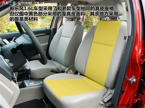 新樂(lè)風(fēng)1.6L車型和老款一樣采用了真皮座椅,但嚴(yán)格意義上來(lái)時(shí),該車的座椅僅在與體接觸部分采用了真皮,其余地方使用的皮革材料。不過(guò)總體的做工還算可以。