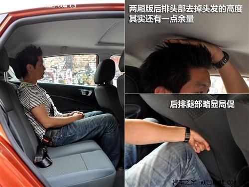 后排的乘坐空間相對來說就比較有限了,此時按照同一體驗人正常駕姿調(diào)整好前排座椅,后排腿部有一拳左右的余量。而后排頭部空間原本還有一點富裕,但是被體驗人豎立的頭發(fā)占了大半,于是圖片上我們只能看到非常小的余量了。以身高衡量的話,185cm的人坐在后排也可以,但只能正襟危坐了,除非前面換個瘦小型的司機,或者女司機。