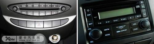 熊貓的多媒體也不示弱,也同樣配備了CD+mp3接口音響系統(tǒng)這一點(diǎn)他們?nèi)绱说南嗨。但是熊貓帶來了FM的聲音。這對(duì)在行車中聽新聞的人來說是個(gè)不錯(cuò)的選擇。