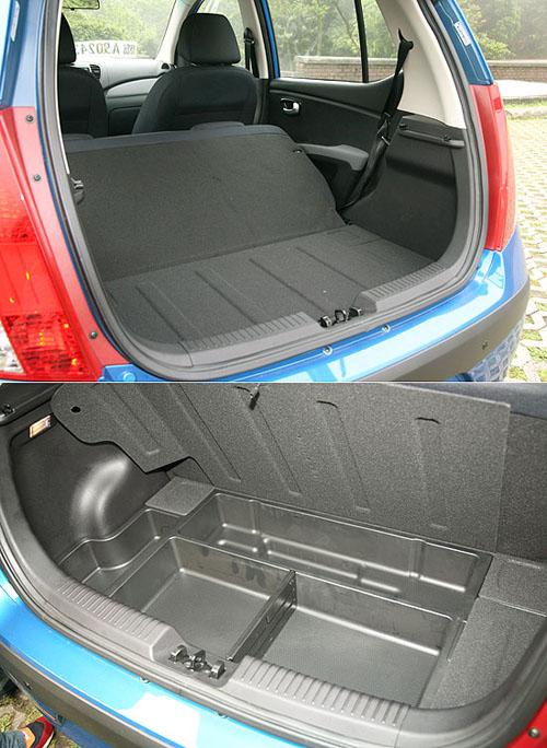 除了在乘坐空間帶來(lái)驚喜,i10后座還有一項(xiàng)特殊設(shè)計(jì),那就是三點(diǎn)安全帶均有專(zhuān)屬的扣還收納位置,在不搭載乘員時(shí)必免扣環(huán)晃動(dòng)產(chǎn)生噪音。而身為掀背車(chē)型,i10自然也提供后座椅放倒功能來(lái)擴(kuò)充行李容積,可惜的是并不能左右分離前傾,放倒后也無(wú)法與行李廂底板形成平面,讓實(shí)用性受到減損,好在i10的行李廂底板下方設(shè)置了隱藏式的防水置物隔間,稍稍彌補(bǔ)了這項(xiàng)缺憾。