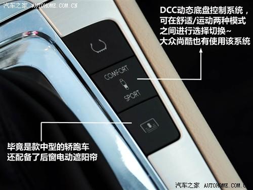 大眾CC搭配大眾的DSG變速箱,應(yīng)該也是跟邁騰一樣的DQ250。排擋樣式跟其他大眾車型都一樣,在擋把上有DSG的字樣。跟尚酷一樣配備了大眾的新技術(shù)DCC動態(tài)底盤控制系統(tǒng),可以在舒適和運動兩種模式中選擇切換。但遺憾的是踏板都是非常普通的樣式,未免太過于低調(diào)了。畢竟也是一款轎跑車,適當(dāng)在細(xì)節(jié)上增強(qiáng)些視覺效果會更受歡迎。不過,那好像也不是大眾的風(fēng)格。