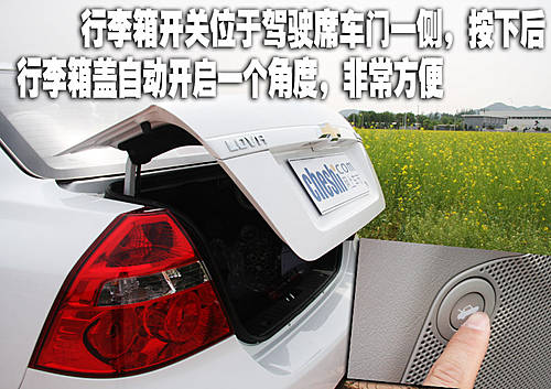 位于駕駛席車門下角的行李箱開關(guān)按鈕在按下后,行李箱可以自動向上掀起一個角度,別看這是一個細小的設(shè)計但是絕對會讓日常使用變得更加便捷。此外,雪佛蘭新樂風在“精品家轎”基礎(chǔ)上進一步提升,配置水準提高了國內(nèi)小車市場的標配門檻:全系車標配四門電動車窗,舒適版車型還增加遙控鑰匙、電動外后視鏡等一系列便利實用的配置,更好地滿足舒適性和功能導(dǎo)向的家庭用車需要?傮w來說新樂風依然是雪佛蘭旗下一款出色的入門級車型,我們也相信新樂風在消費者心目中依然會占有較高的地位。